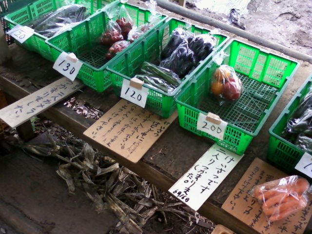 写真は野菜の無人スタンド。「二人つかまりました」がこれでもかと!w